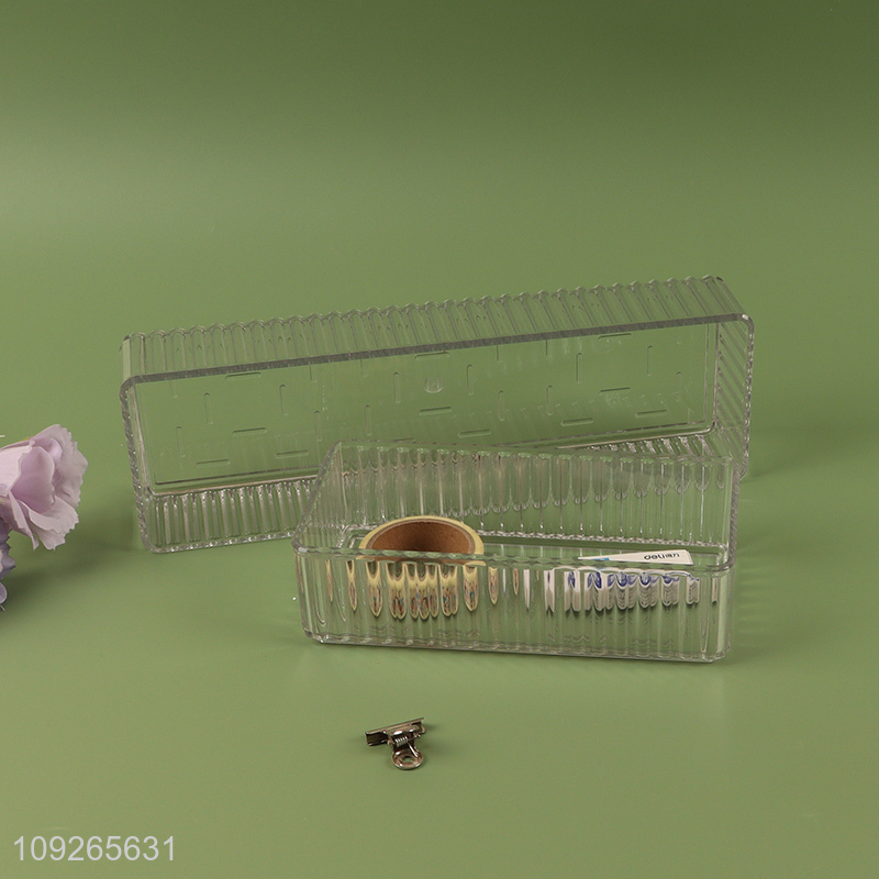Yiwu market rectangle clear home office desktop organizer plastic storage box