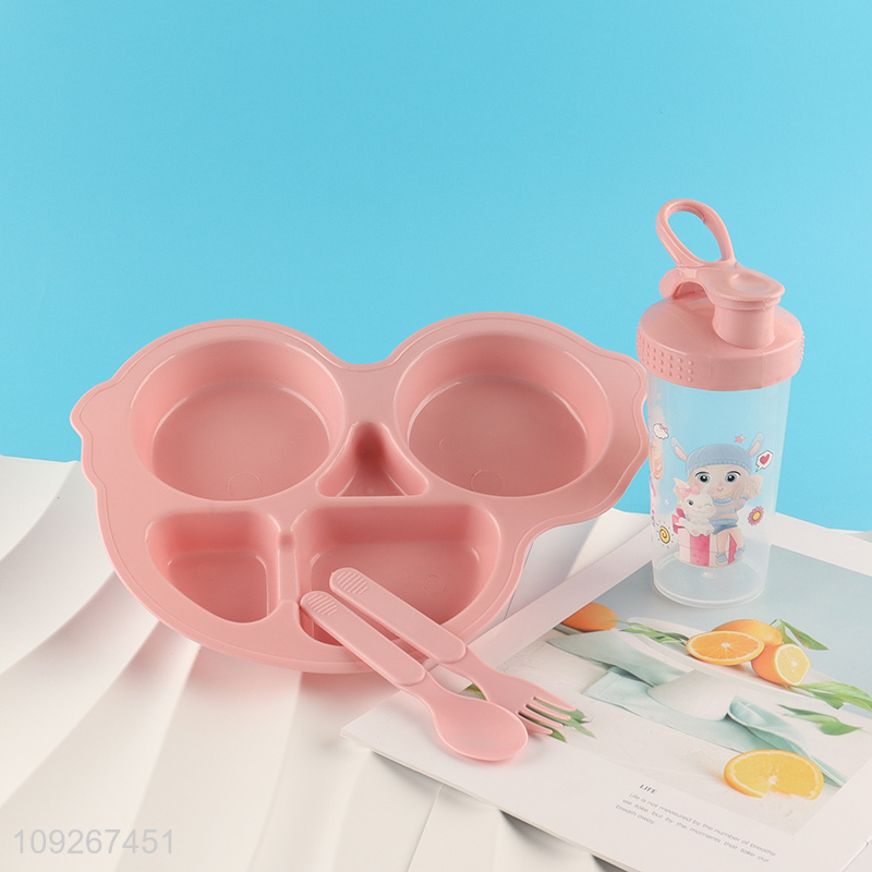 Popular products cartoon plastic baby dinner plate water bottle set for sale