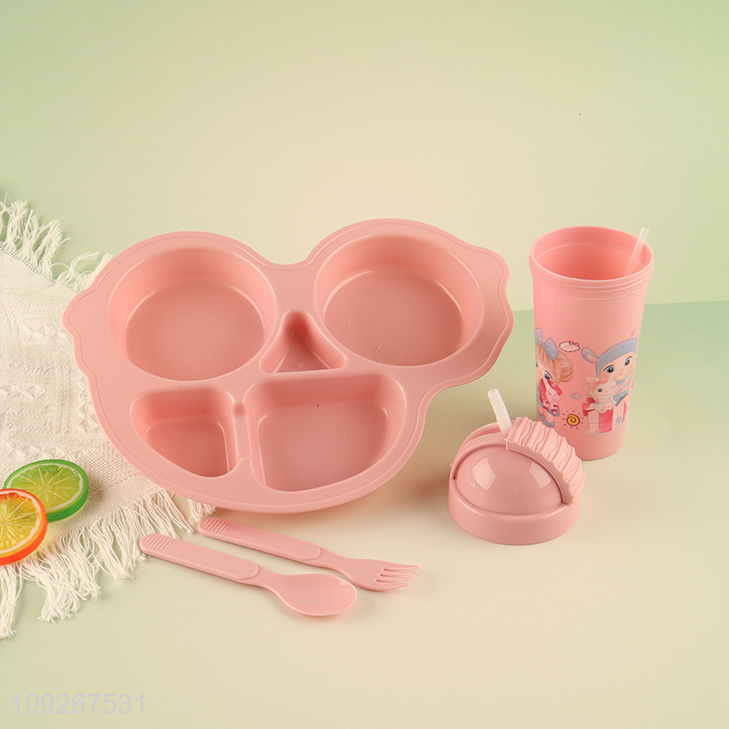 Good selling car shape pink plastic dinner plate straw cup set wholesale