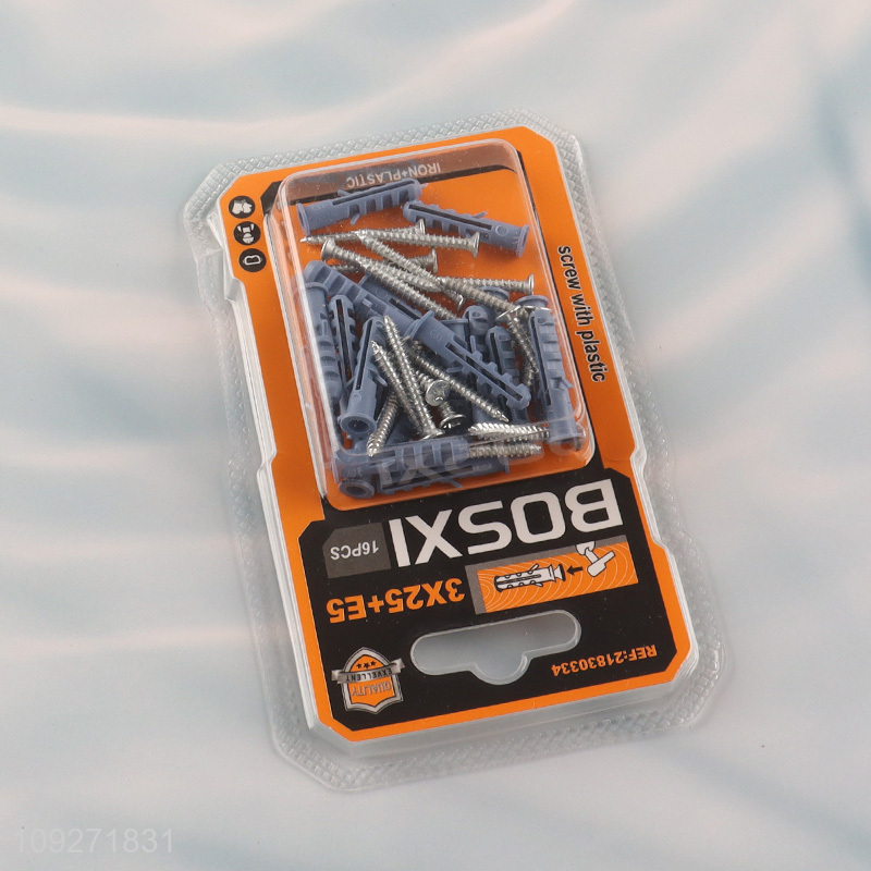 Yiwu market 16pcs plastic wall anchor and screw set for hardware accessories