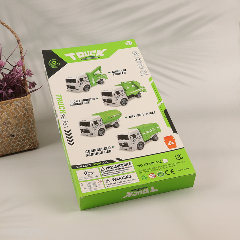 Online wholesale children's toy pull back car set sanitation truck toy set